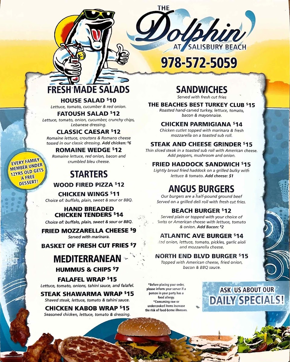 Introducing the menu at The Dolphin at Salisbury Beach, a hidden gem nestled on the stunning coastline of Salisbury, MA. This local dive bar offers a vibrant dining experience with a menu that reflects care and passion in every dish. Guests rave about the quality and flavor, from hearty sandwiches to tantalizing appetizers that are perfect for sharing.